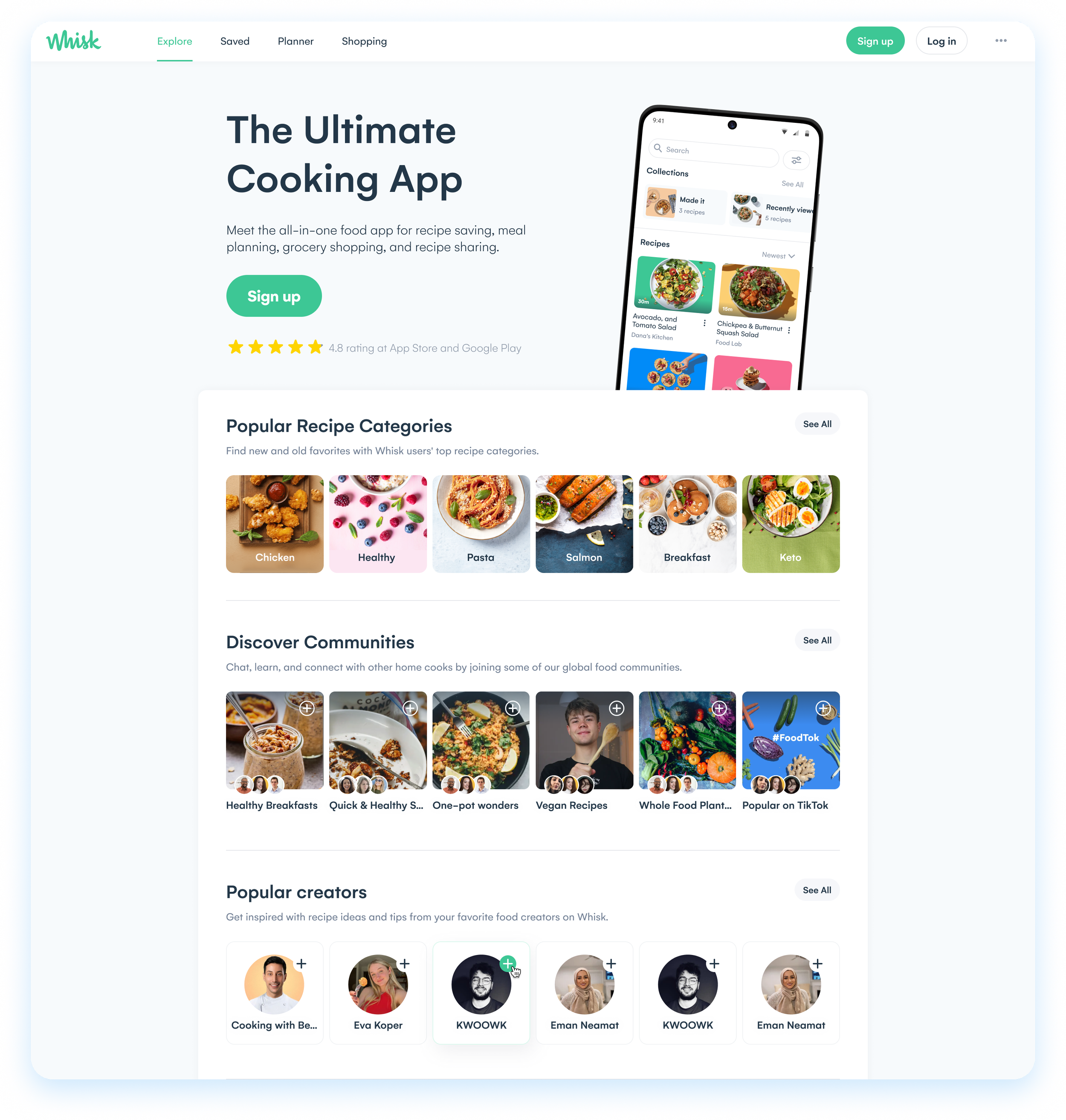 Whisk Web&Native Apps (Jan 2022 — April 2023)
